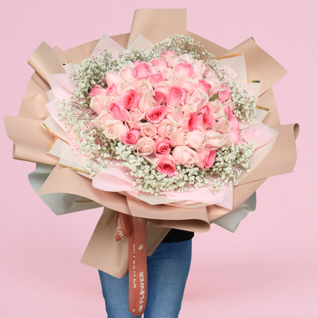 Experience the timeless allure of a 99 roses bouquet at JM Flower. Whether for a romantic gesture, a heartfelt apology, or a grand celebration, our bouquets convey emotions with unparalleled elegance.