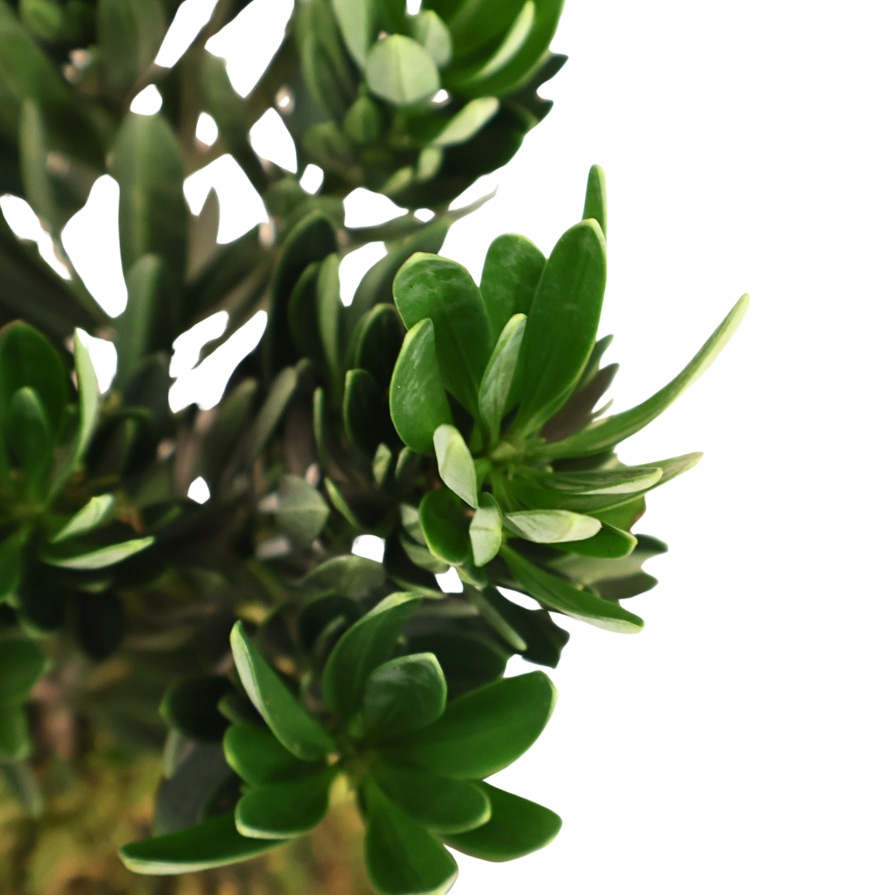 Podocarpus is an evergreen plant with narrow leaves that create a simple, elegant look. Its thick foliage adds green structure to warm, humid indoor spaces. Kokedama Moss Ball, offering a distinctive and elegant way to bring greenery into any room. Its lush and vibrant leaves create a calming, natural accent perfect for enhancing interior spaces with a touch of botanical charm.