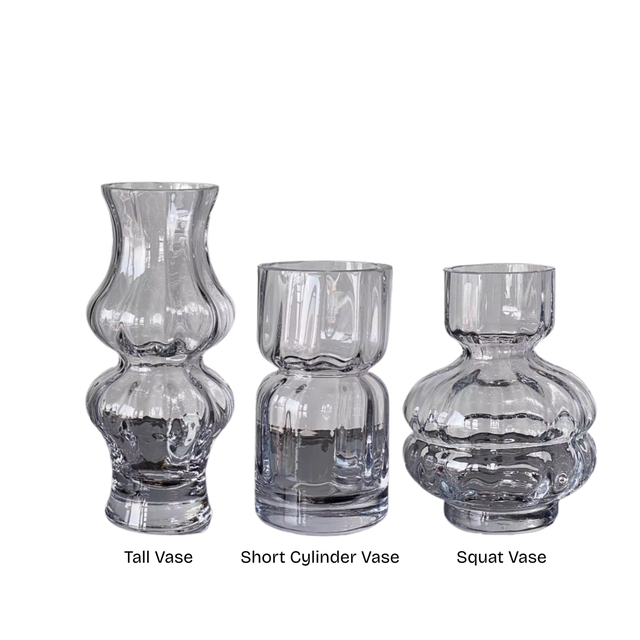 Ribbed Grey Glass Vase - (Squat Vase) H15cm D8cm is backordered and will ship as soon as it is back in stock.