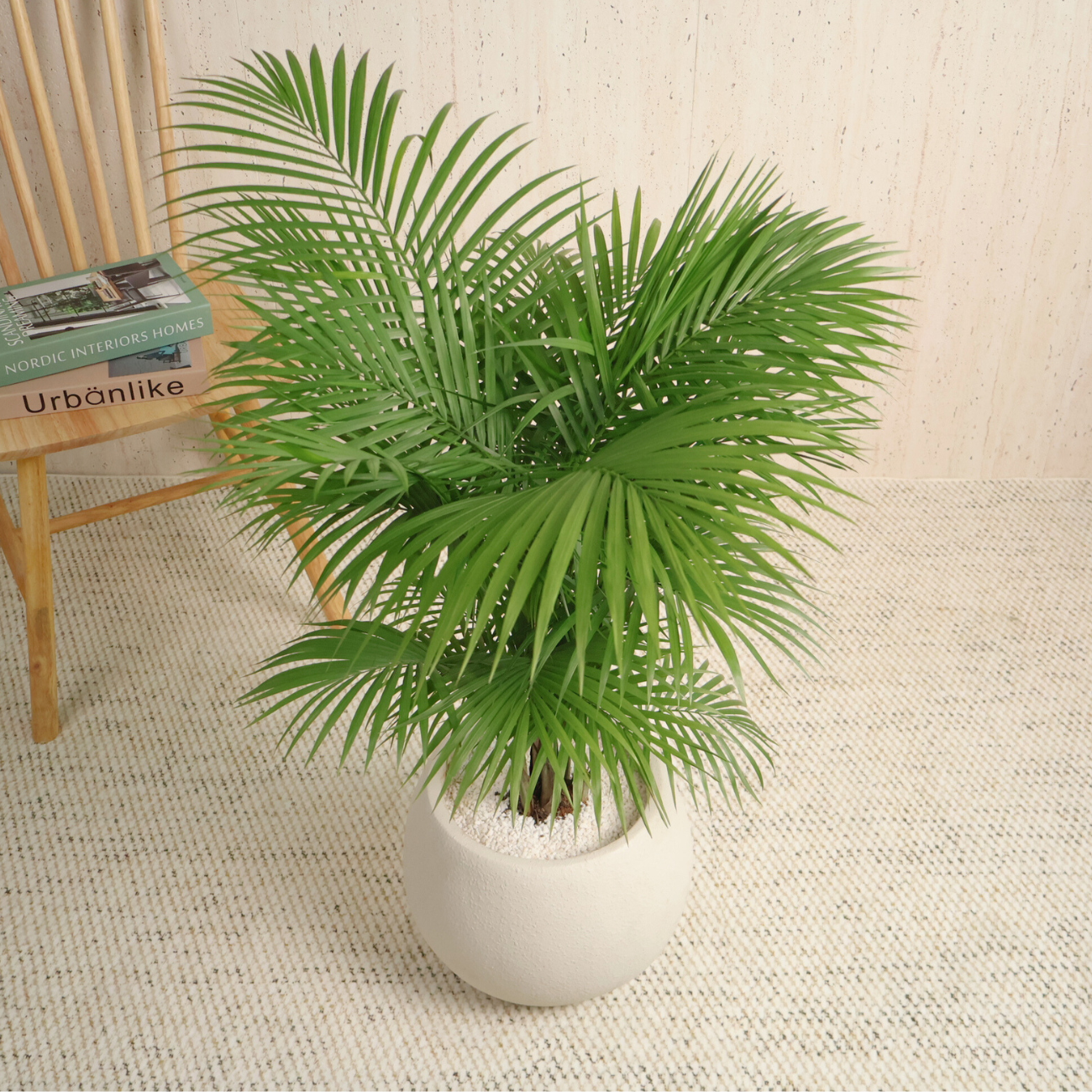 Areca Palm, also known as the Yellow Palm, brings a warm and tropical touch to any space with its feathery, arching fronds. Its vibrant yellow-green leaves add softness and movement, creating a serene and refreshing atmosphere. This elegant foliage enhances interiors with natural beauty and a subtle splash of color.