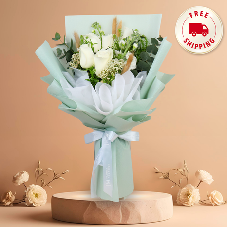 Queen Sentiment (3 Roses, 7 Mattiola) - Mother's Day Bouquet