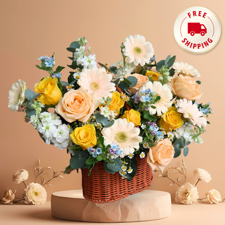 Rosy Charm (10 Roses) - Mother's Day Flower Basket