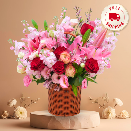 Tropical Romance (Mattiola, Lily, Roses) - Mother's Day Flower Basket