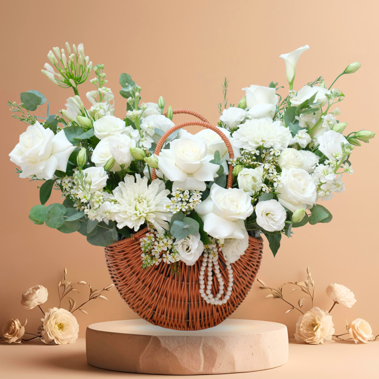 - Freesia, Eustoma & Calla Lily Korean-Style Basket Arrangement