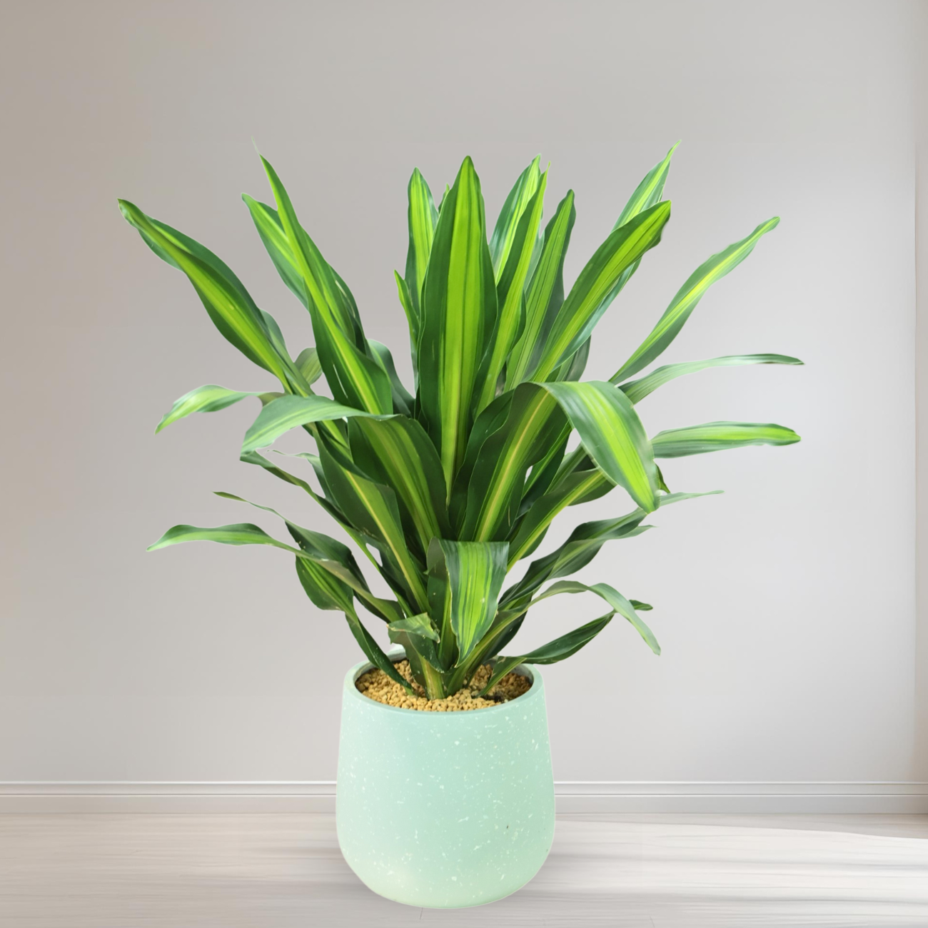 Dracaena is a popular indoor plant admired for its striking, sword-shaped leaves and elegant upright growth. Symbolizing resilience, protection, and positive energy, it is frequently used to enhance indoor spaces with a sense of strength and tranquility. The Dracaena’s vibrant foliage and air-purifying properties contribute to creating a healthy and balanced environment. Its adaptability and low-maintenance care make it a timeless favorite among plant lovers and interior designers alike.
