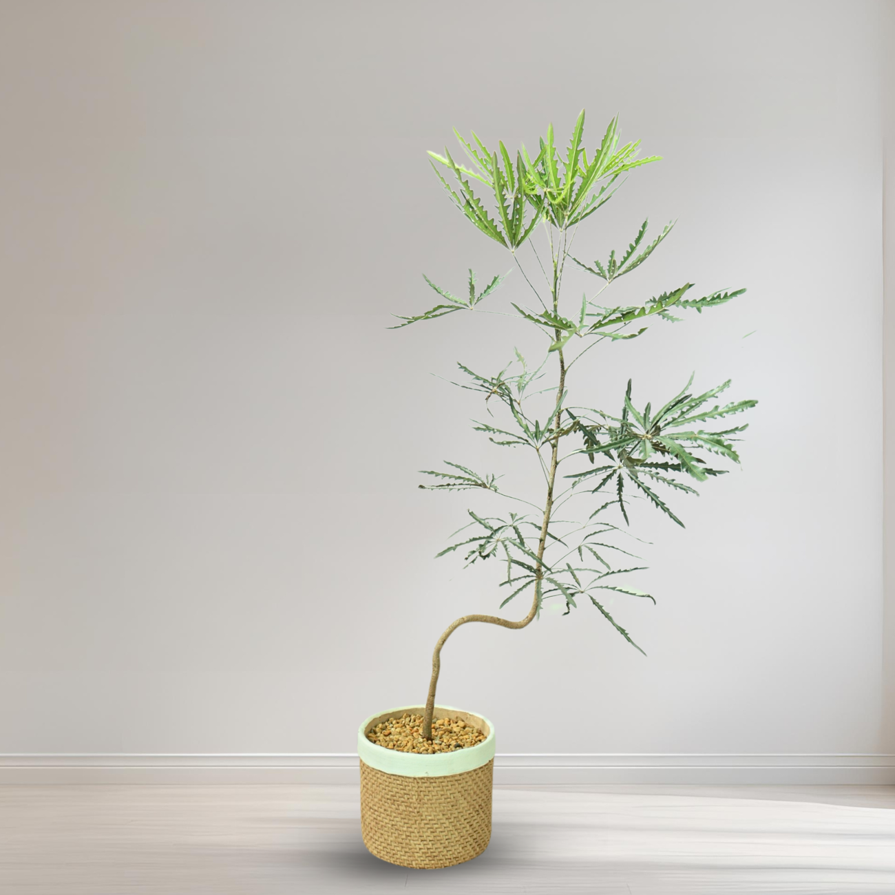False Aralia (Plerandra elegantissima) is a distinctive indoor plant admired for its finely serrated, narrow leaves that bring an air of sophistication and texture to any space. Celebrated for symbolizing clarity, protection, and refined elegance, it is often chosen to enhance interiors with a unique and calming presence. The False Aralia’s graceful form and rich green to bronze-toned foliage add depth and character while subtly purifying the air. Its upright growth and moderate care needs make it a favorite among plant lovers, interior stylists, and those seeking a statement piece with quiet charm.