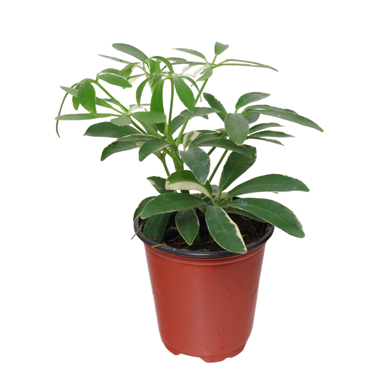Schefflera Variegated, also known as the umbrella plant, is admired for its striking foliage marked with creamy yellow and green patterns. Its broad, glossy leaflets fan out like an umbrella, bringing a bold, tropical feel to indoor and outdoor spaces. Easy to care for and visually dynamic, it’s a favorite for brightening up any room.