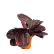 Calathea Dottie features striking, oval leaves with vibrant green backgrounds and deep purple undersides, adorned with bold white veins. Its unique, eye-catching foliage adds a touch of elegance and liveliness to any indoor space, making it a perfect plant for enhancing your home’s aesthetic appeal.