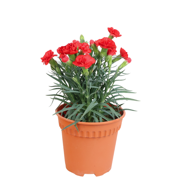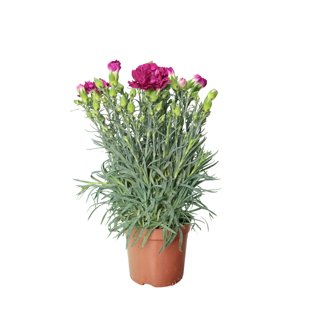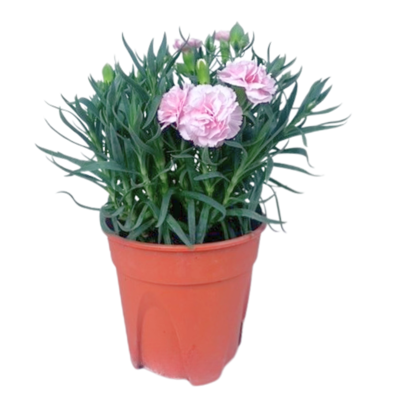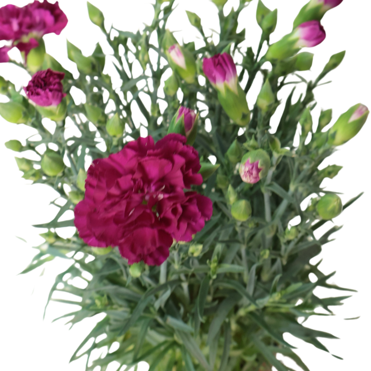 Carnation is a popular flowering plant known for its fragrant, ruffled blooms. The flowers come in a variety of color, including pink, red, white, and purple. Carnations have long, slender stems with grey-green leaves and can grow as annuals or perennials depending on the climate.