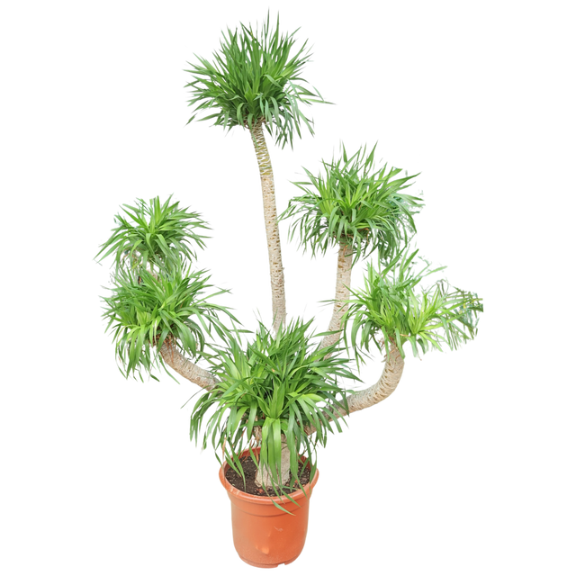 Dracaena Draco, commonly called the Dragon Tree, is a slow-growing evergreen tree native to the Canary Islands, Cape Verde, and Madeira. It's known for its thick, tree-like trunk, umbrella-shaped canopy, and sword-like leaves that form a rosette at the top. The Dragon Tree also produces white, fragrant, lily-like flowers in clusters.