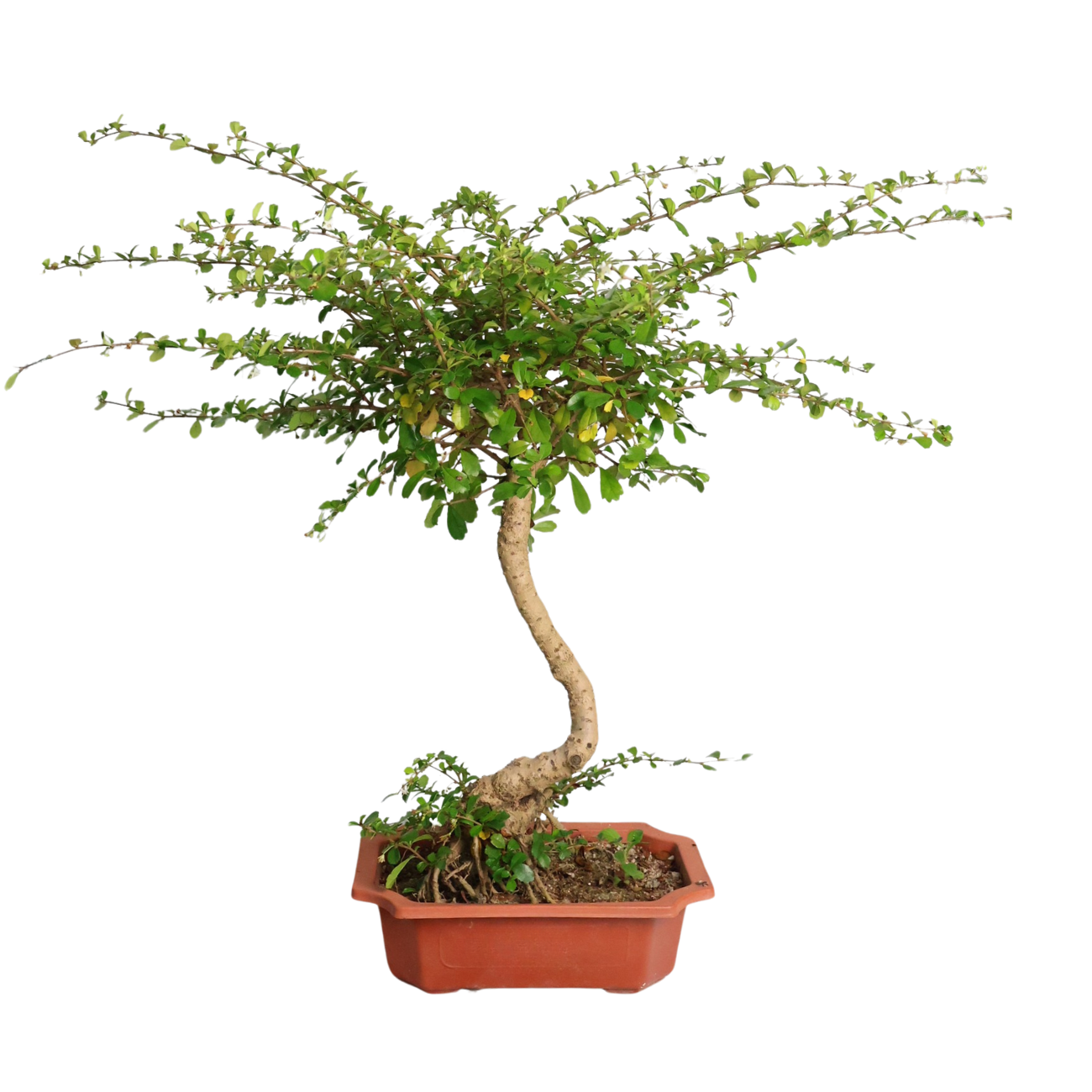 Serissa Bonsai, also known as the Tree of a Thousand Stars, is admired for its delicate, glossy foliage and clusters of tiny white flowers. Its dense, fine leaves form a graceful canopy that brings a touch of natural elegance and serenity to any indoor space. Ideal as a living decoration, this bonsai invites a closer look at its intricate, vibrant greenery.