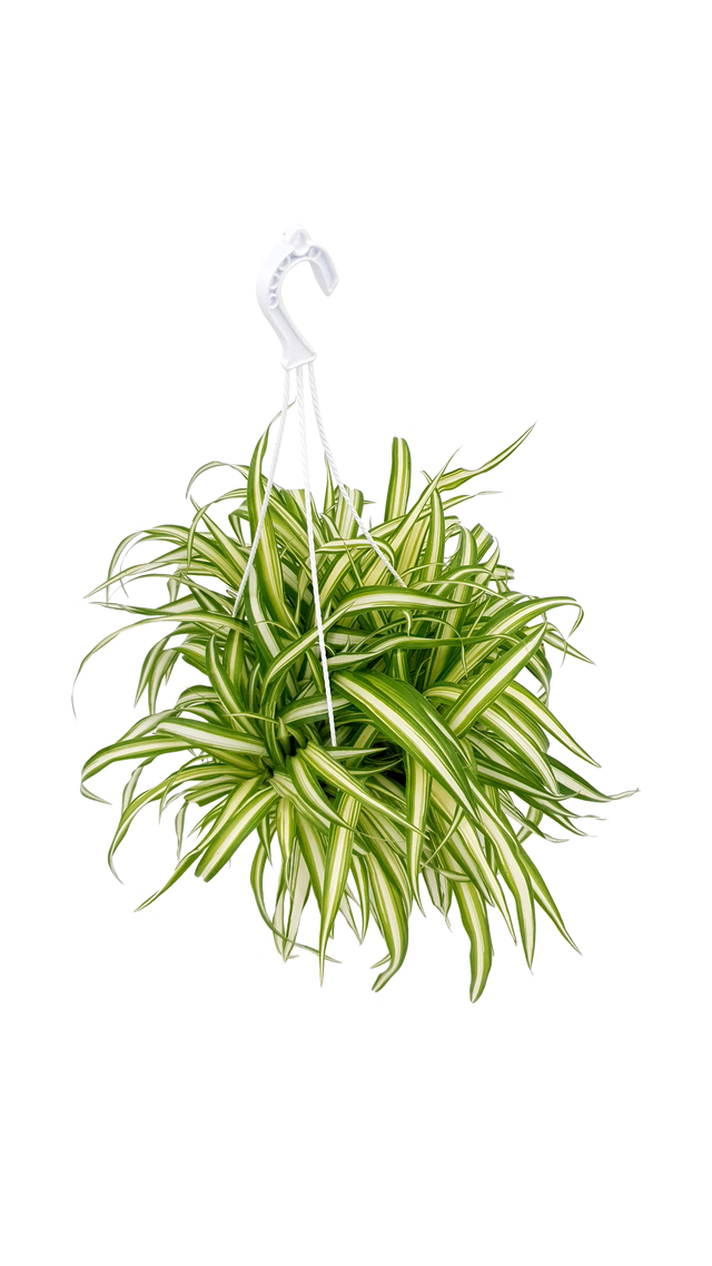Chlorophytum, commonly called the Spider Plant, boasts slender, arching leaves with striking green and white variegation. The vibrant foliage introduces a refreshing, natural element to any indoor setting, enhancing space with its graceful texture and lively appearance. Its elegant, cascading leaves bring subtle movement and depth to your décor.