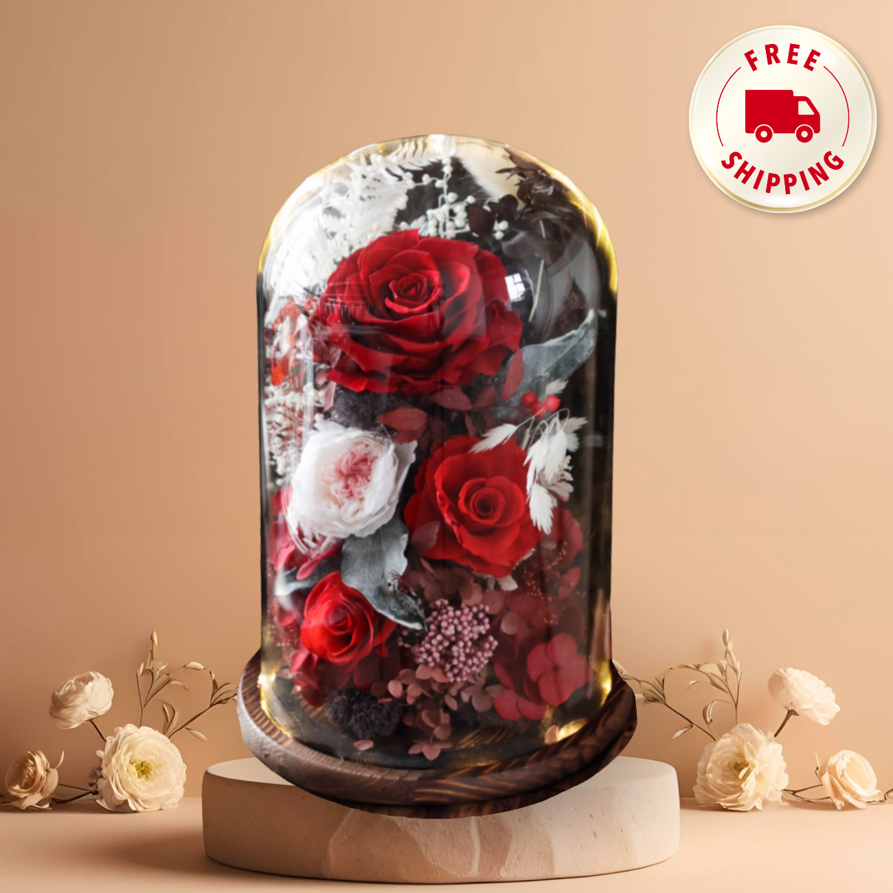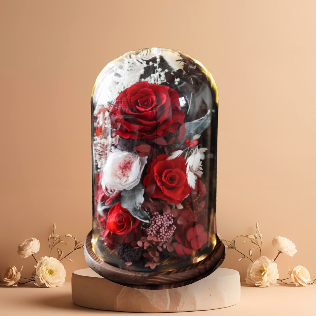 A flower arrangement that speaks from the heart. Showcasing elegantly preserved roses and carnations—symbols of love and admiration—this timeless bouquet remains breathtaking for months with no need for watering or maintenance.