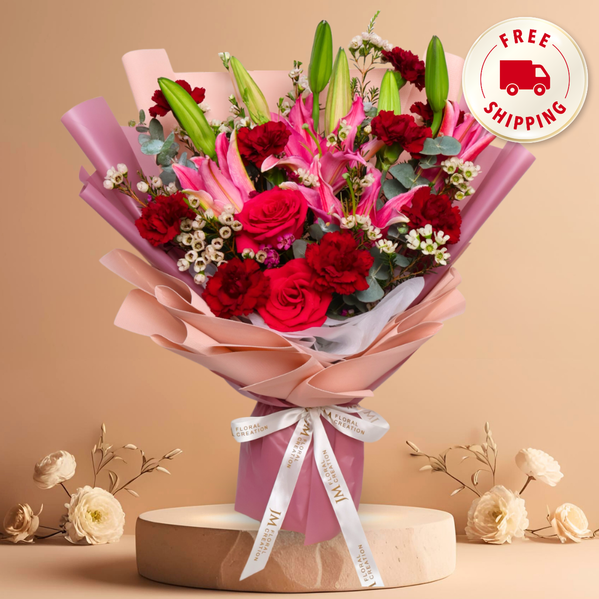 Nurturing Delights (Lily, Roses, Carnation) - Mother's Day Bouquet