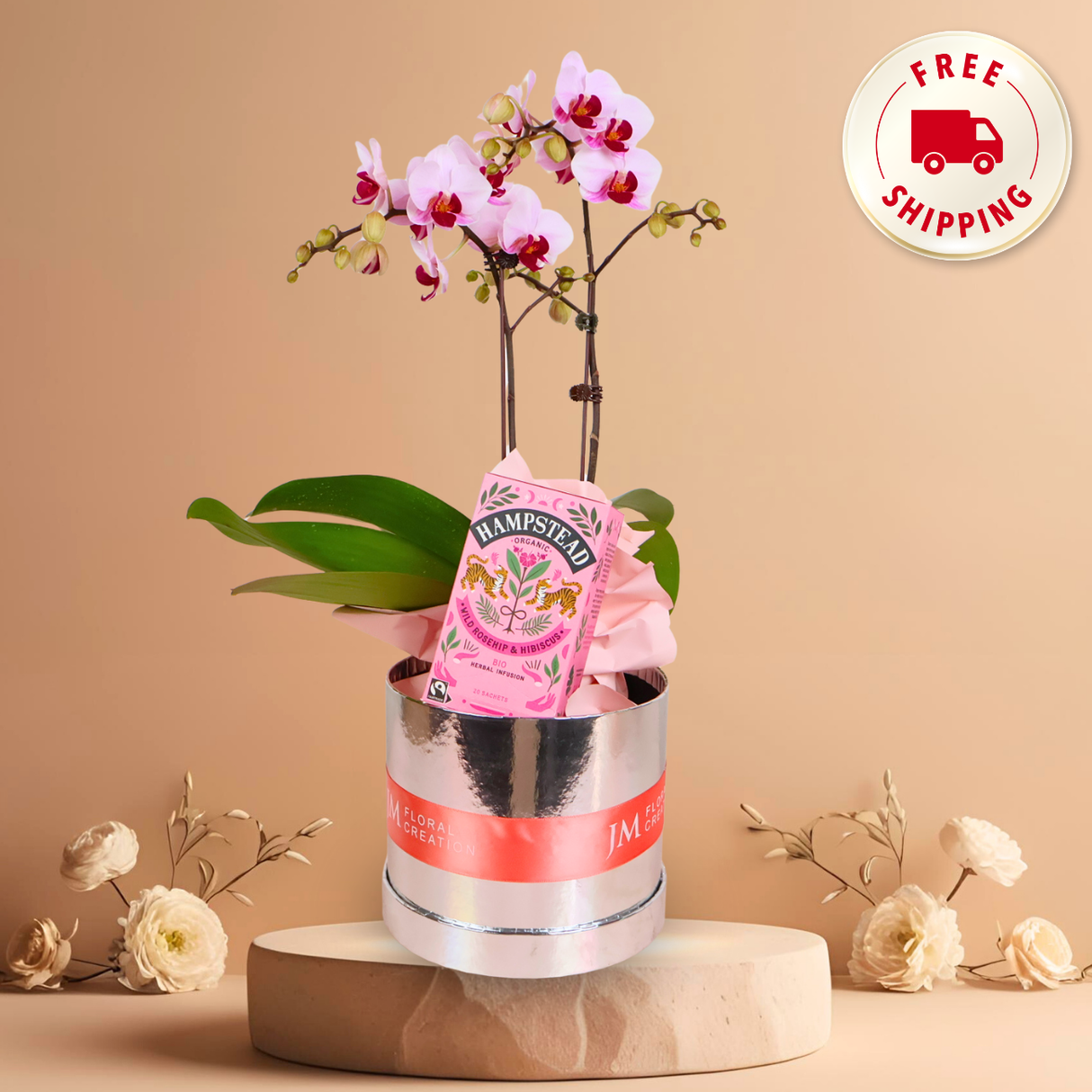 Make any special occasion truly unforgettable with our elegant Hamper Gift Set, featuring a beautiful selection of fresh, handpicked blooms paired with thoughtfully curated calming herbal tea — everything needed to feel cherished and pampered.