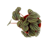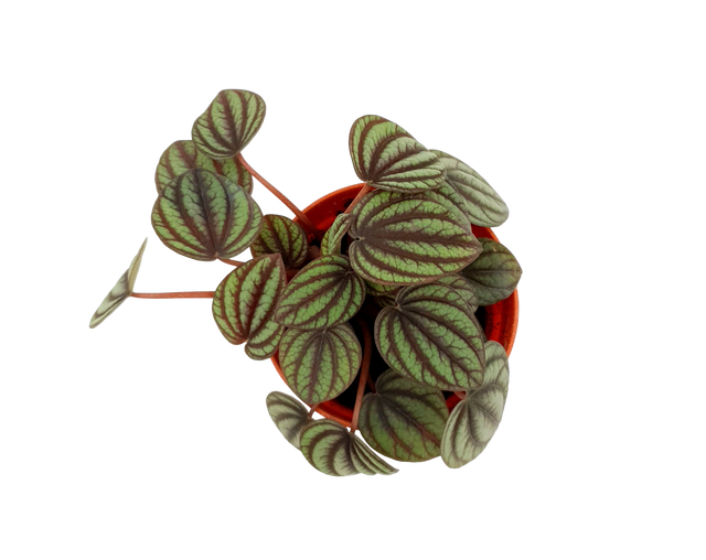 Peperomia Albovittata, including the Piccolo Banda and Rana Verde varieties, is a small tropical plant with unique patterned leaves. Piccolo Banda features heart-shaped leaves with silver-green and dark veins, while Rana Verde has larger, deep green leaves resembling a frog’s shape.