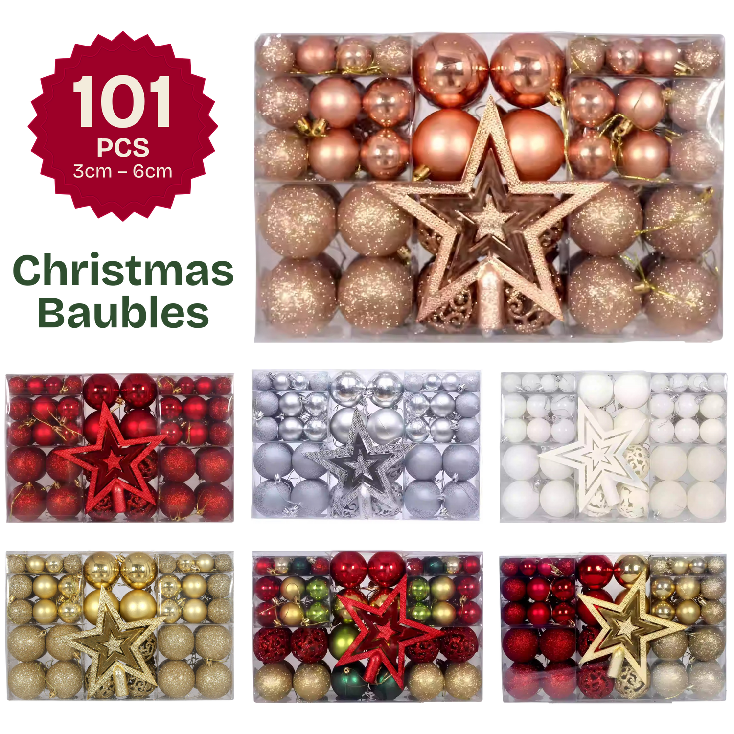 Deck your tree with our Premium Christmas Baubles Set, available in a range of colours to suit any style! From large statement ornaments to smaller accents, find the perfect fit for your holiday decor. Mix and match for a truly custom, uniquely festive holiday display!